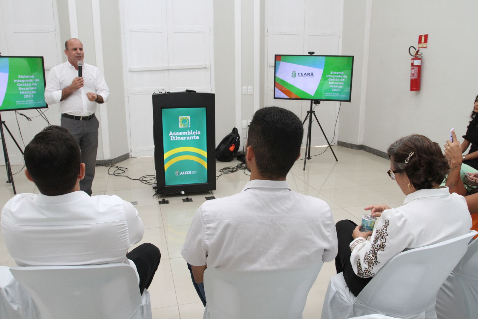 Durante a manhã de hoje, aconteceu, também no auditório do Palácio Entre Rios, uma reunião técnica, promovida pela Secretaria de Recursos Hídricos do Estado, com o fim de apresentar aos gestores e servidores de pastas relacionadas ao meio ambiente e recursos hídricos do Maciço do Baturité a Política de Recursos Hídricos do Estado.