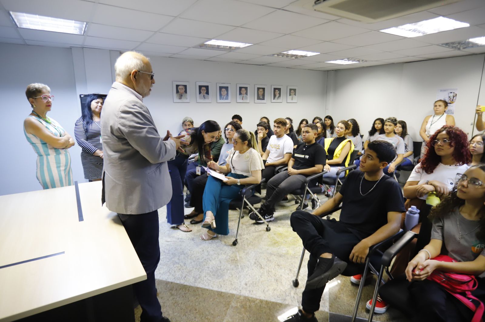 Já no período da tarde, 42 alunos, do 3º ano do ensino médio da Escola de Ensino Médio de Tempo Integral (EEMTI) Antônio Bezerra, no bairro Antônio Bezerra, em Fortaleza, receberam as boas-vindas do coordenador do Malce, Paulo Roberto Nunes. Ele saldou os jovens que integram a primeira turma que está visitando a Alece no período da tarde do ano de 2024.