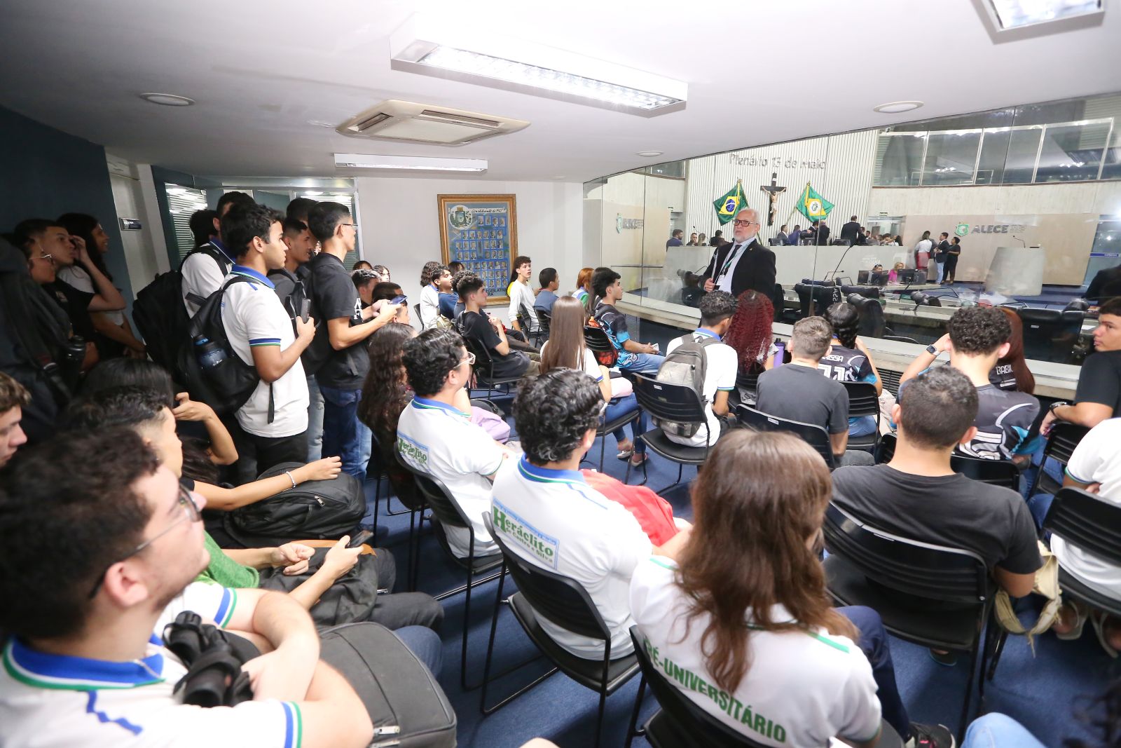 Acompanhados do professor de Filosofia Mozart Alencar e do diretor da escola, Rômulo Costa, os alunos conheceram o Plenário 13 de Maio, o Complexo de Comissões Técnicas da Casa, as instalações da rádio FM Assembleia (96,7 MHz) e o acervo do Malce.