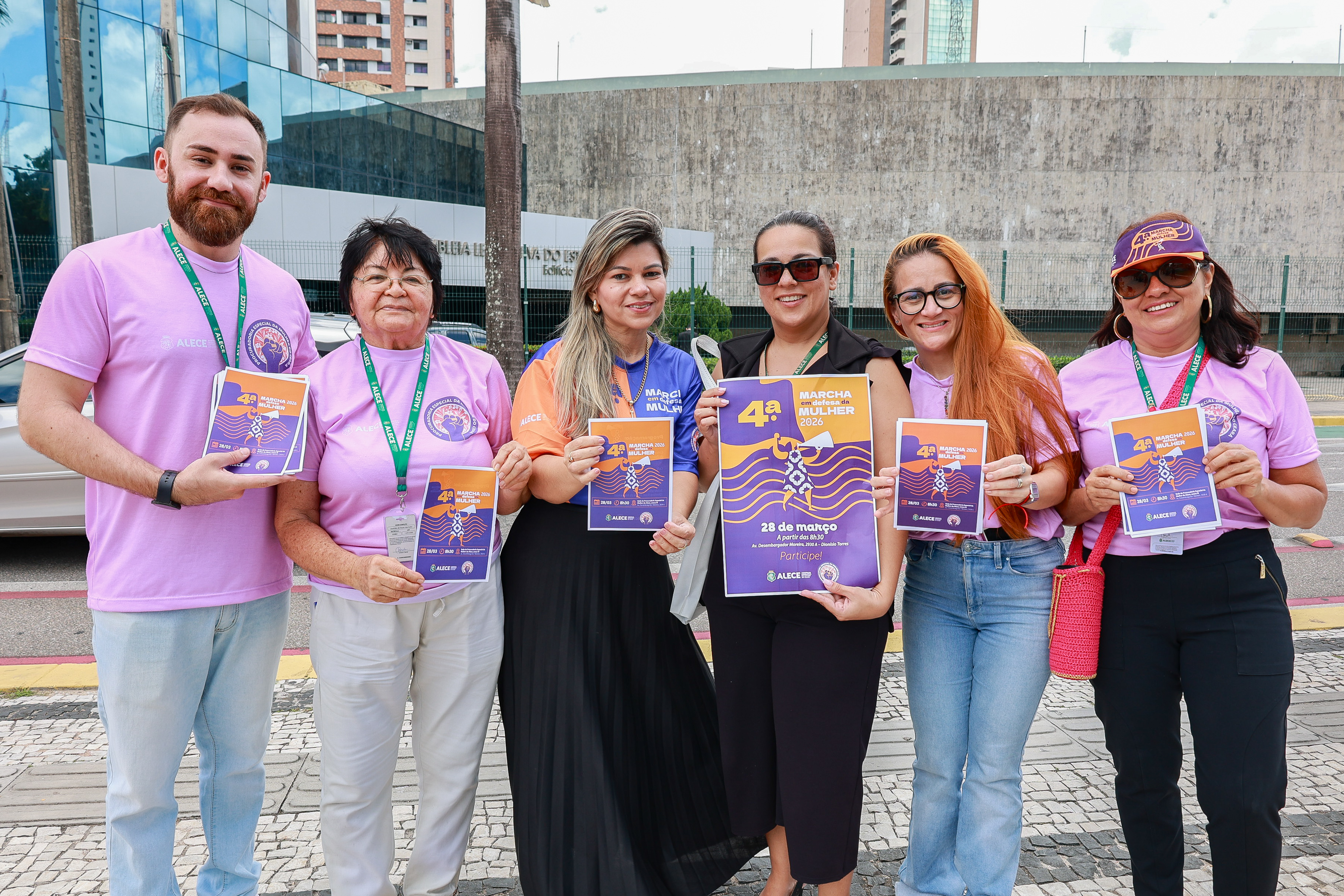 A Assembleia Legislativa do Estado do Ceará (Alece) realizou, por meio da Procuradoria Especial da Mulher (PEM), na manhã desta quinta-feira (26/03), mais uma ação de mobilização, desta vez nas ruas do entorno da Casa, para convocar a população para a 4ª Marcha em Defesa das Mulheres, que ocorre neste sábado (28/03).