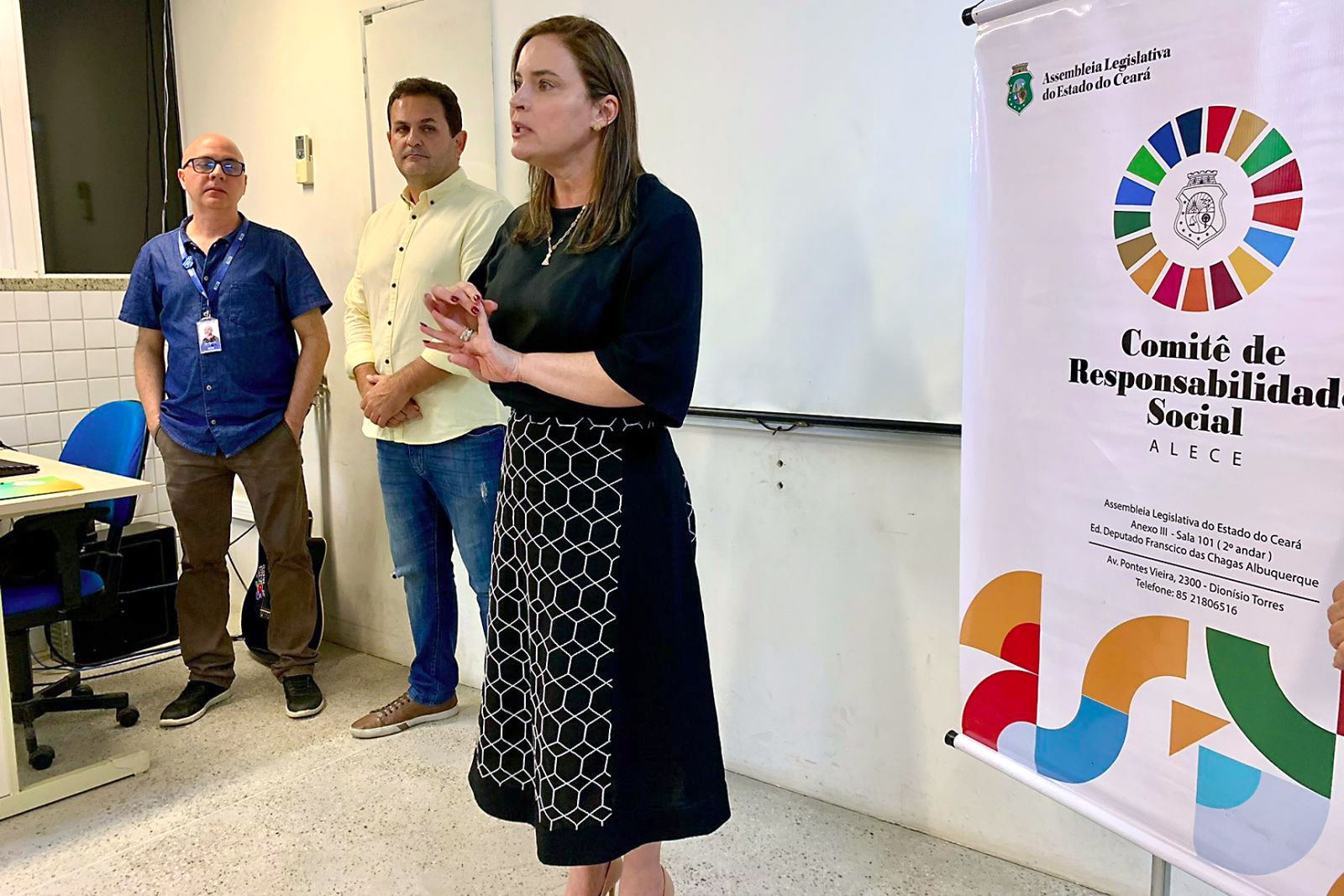 Presente na solenidade final de encerramento, a primeira-dama da Alece e idealizadora do Comitê de Responsabilidade Social, Cristiane Leitão, ressaltou que a realização do curso é fruto de uma missão que hoje a Casa Legislativa possui, que é a de promover qualificação para a sociedade cearense.