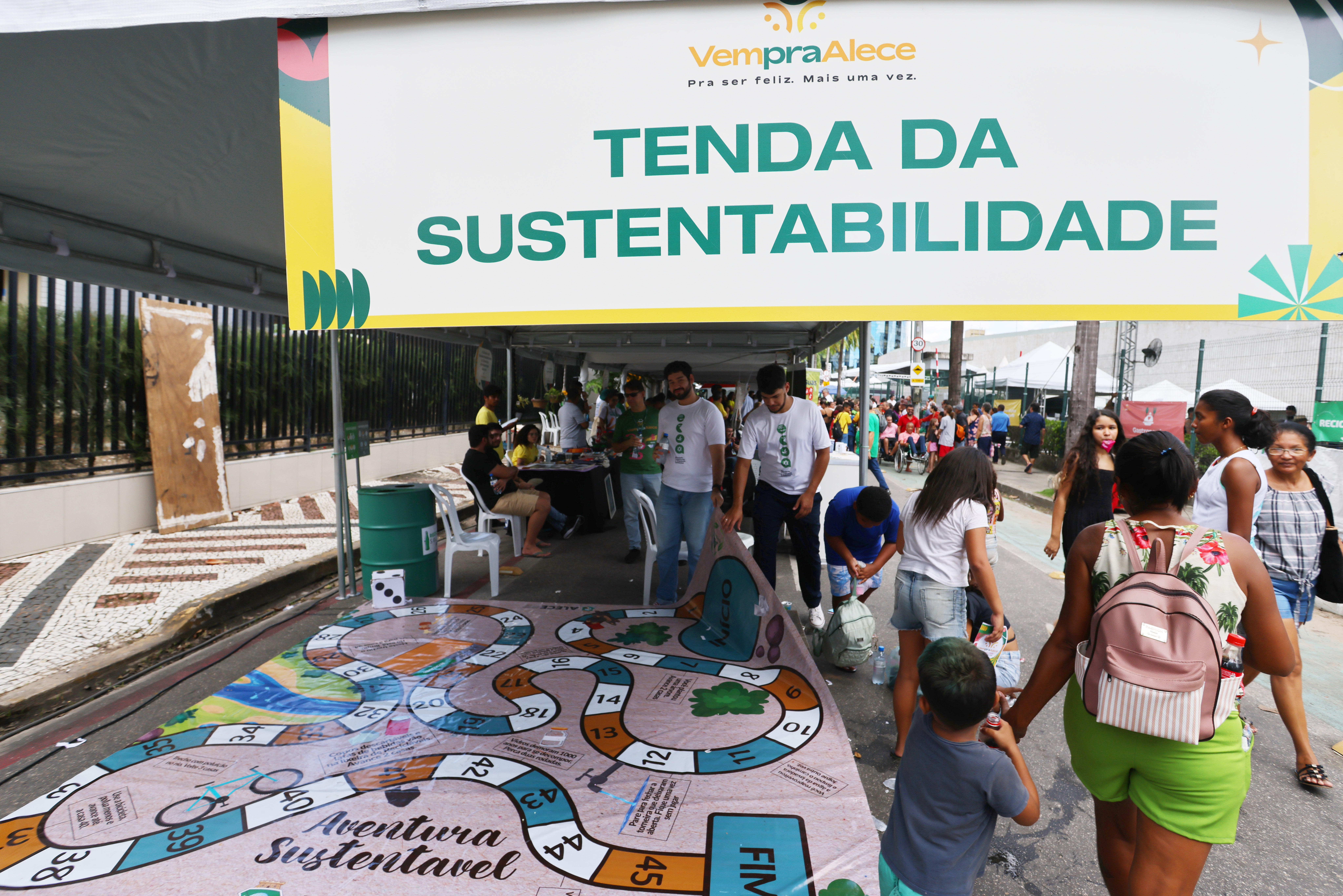 Na Tenda da Sustentabilidade, a Secretaria de Meio Ambiente e Mudança do Clima (Sema), parceira da Alece no evento, realizou a distribuição de mudas de plantas. Uma exposição sobre sementes nativas da caatinga e a importância de manter a biodiversidade desse bioma exclusivamente brasileiro também foi atração. A Tenda da Sustentabilidade possibilitou ainda uma imersão com realidade virtual com óculos 3D, em parceria com a Companhia de Água e Esgoto do Ceará (Cagece), apresentando os serviços e quais as etapas essenciais antes de a água chegar à casa das pessoas.