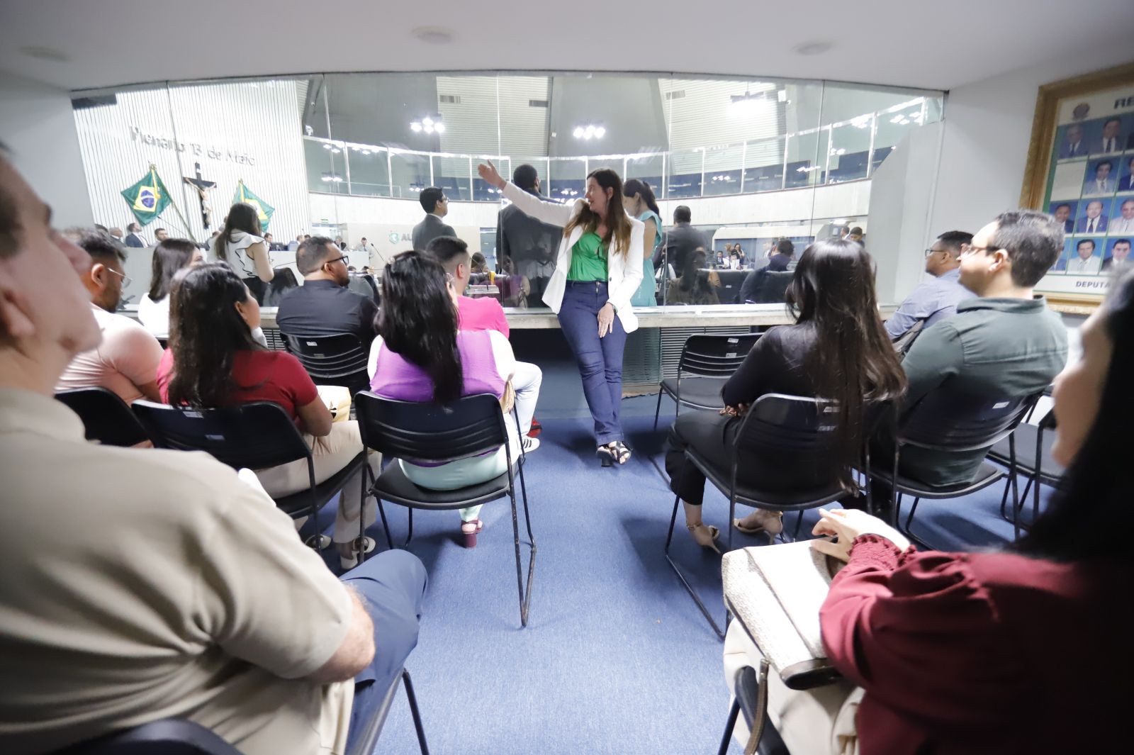 À tarde, foi a vez de 40 alunos do curso de Direito do Centro Universitário Estácio participarem do projeto. Acompanhados da professora de Práticas Jurídicas Marília Barbosa, os visitantes foram recebidos pela deputada Lia Gomes (PDT), que também conversou sobre as atribuições do Poder Legislativo e sobre seu mandato parlamentar.