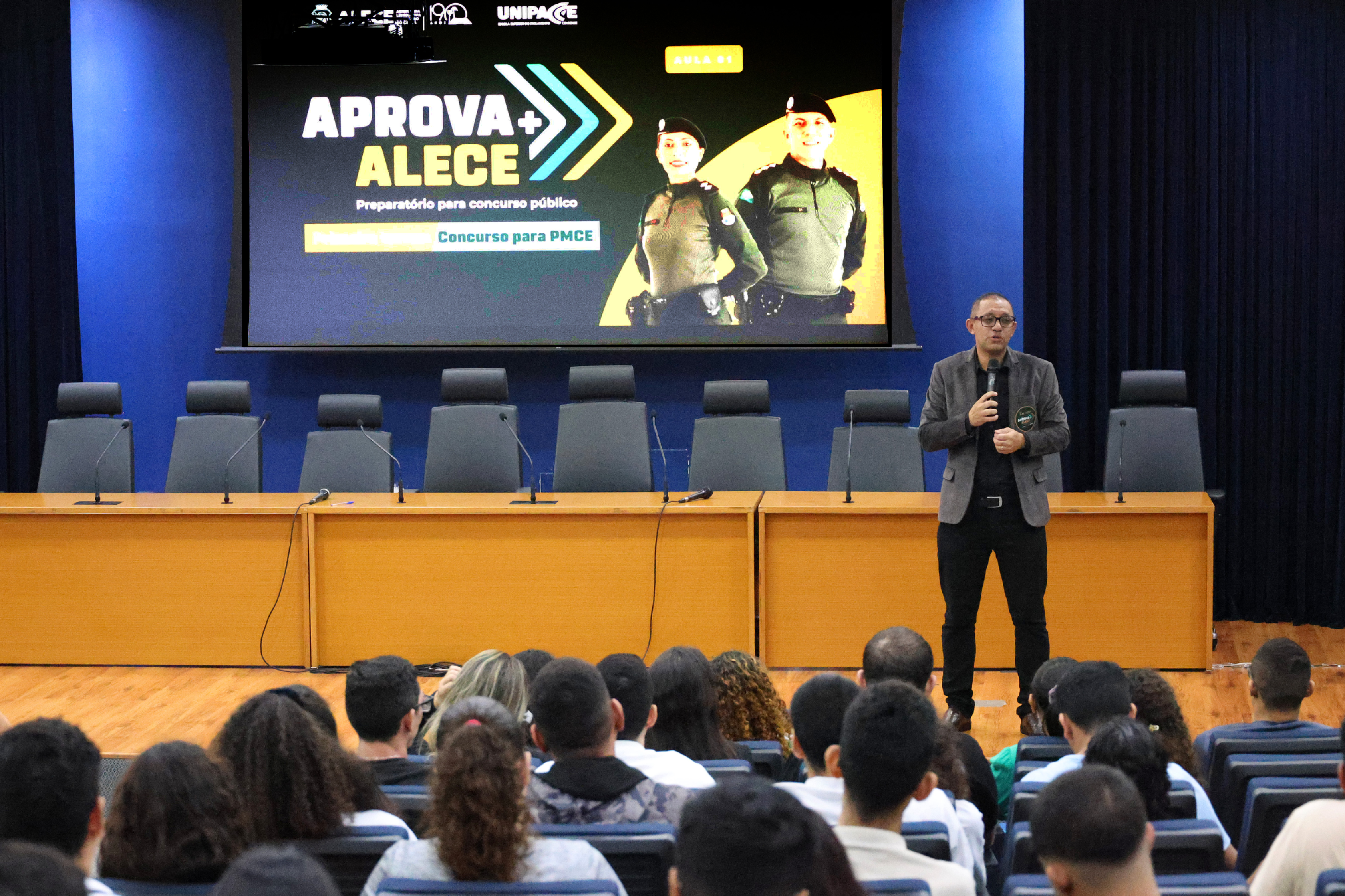 Quem deseja ingressar no serviço público passa a ter um suporte educacional e preparatório de qualidade e gratuito no Ceará com a ajuda do projeto Aprova+ Alece, uma iniciativa da Assembleia Legislativa do Estado do Ceará (Alece), por meio da Escola Superior do Parlamento Cearense (Unipace). Na noite dessa terça-feira (03/06), foi realizada a aula inaugural do curso preparatório para concursos, reforçando a importância de preparar os candidatos não apenas para as provas, mas também para os desafios e responsabilidades inerentes às funções públicas.