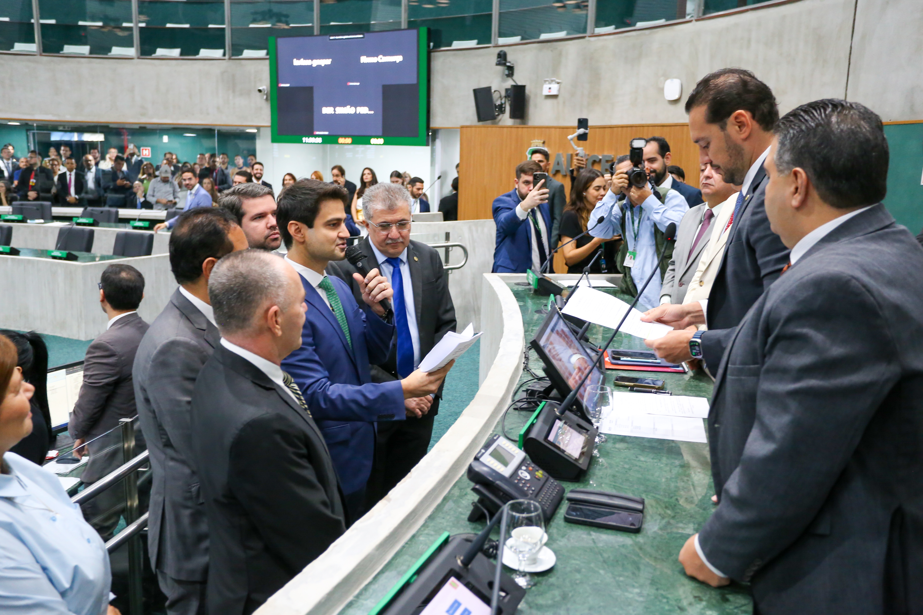 O parlamentar foi recepcionado pelos deputados Alcides Fernandes (PL), Stuart Castro (Avante), Sargento Reginauro (União), Antônio Henrique (PDT) e Jô Farias (PT) por ocasião do seu juramento de posse.