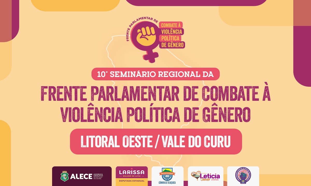 A Assembleia Legislativa do Estado do Ceará (Alece), por meio da Frente Parlamentar de Combate à Violência Política de Gênero, realiza, na manhã desta sexta-feira (19/09), em parceria com a vereadora de Tejuçuoca Letícia Camelo, o 10º Seminário Regional sobre Enfrentamento à Violência Política de Gênero, na Câmara Municipal da cidade.