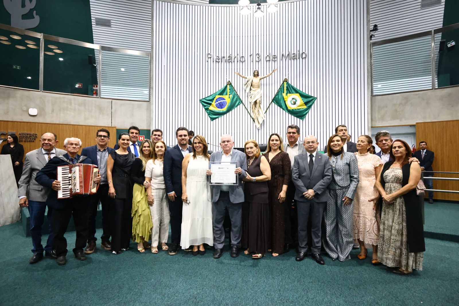 Rogério Aguiar recebe homenagem ao lado de parlamentares, familiares e amigos - Foto: Marcos Moura