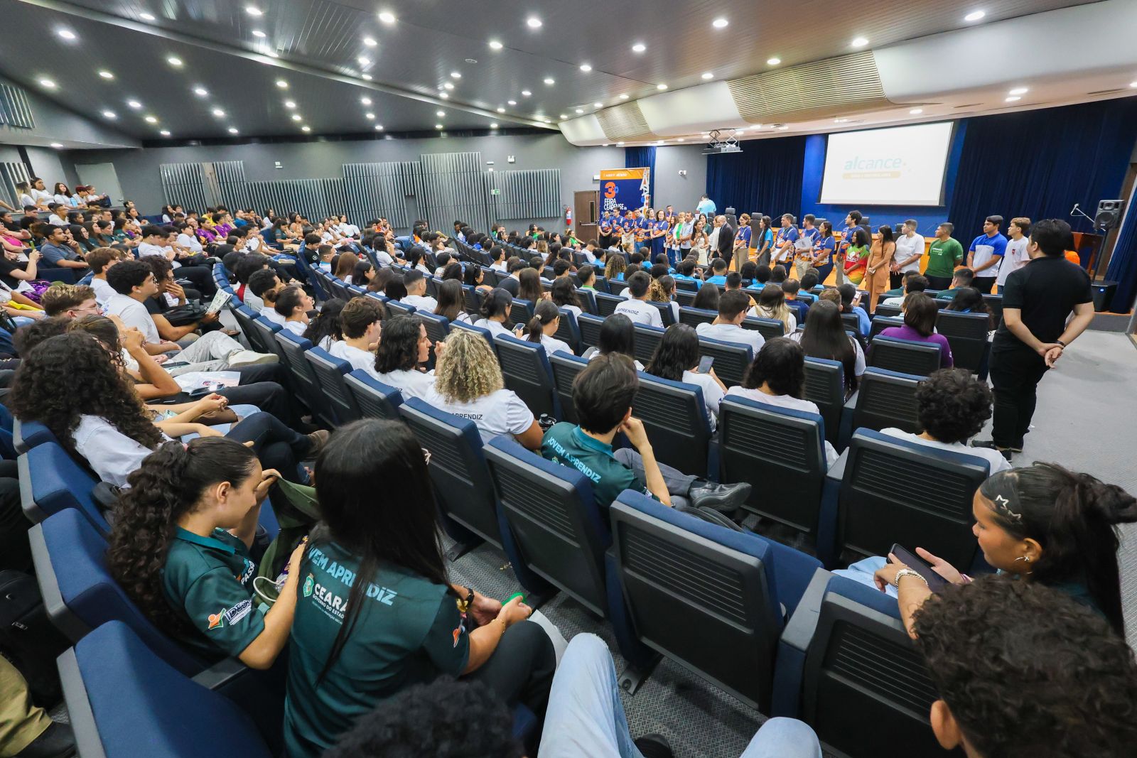 A Assembleia Legislativa do Estado do Ceará (Alece) realizou, na manhã desta quinta-feira (11/12), o segundo e último dia da III Feira Cearense de Aprendizagem Profissional, promovida pelo programa Alcance. A iniciativa da Alece é voltada à preparação de estudantes para vestibulares, qualificação profissional e desenvolvimento socioemocional. O evento aconteceu das 8h às 12h30, no hall da Casa.