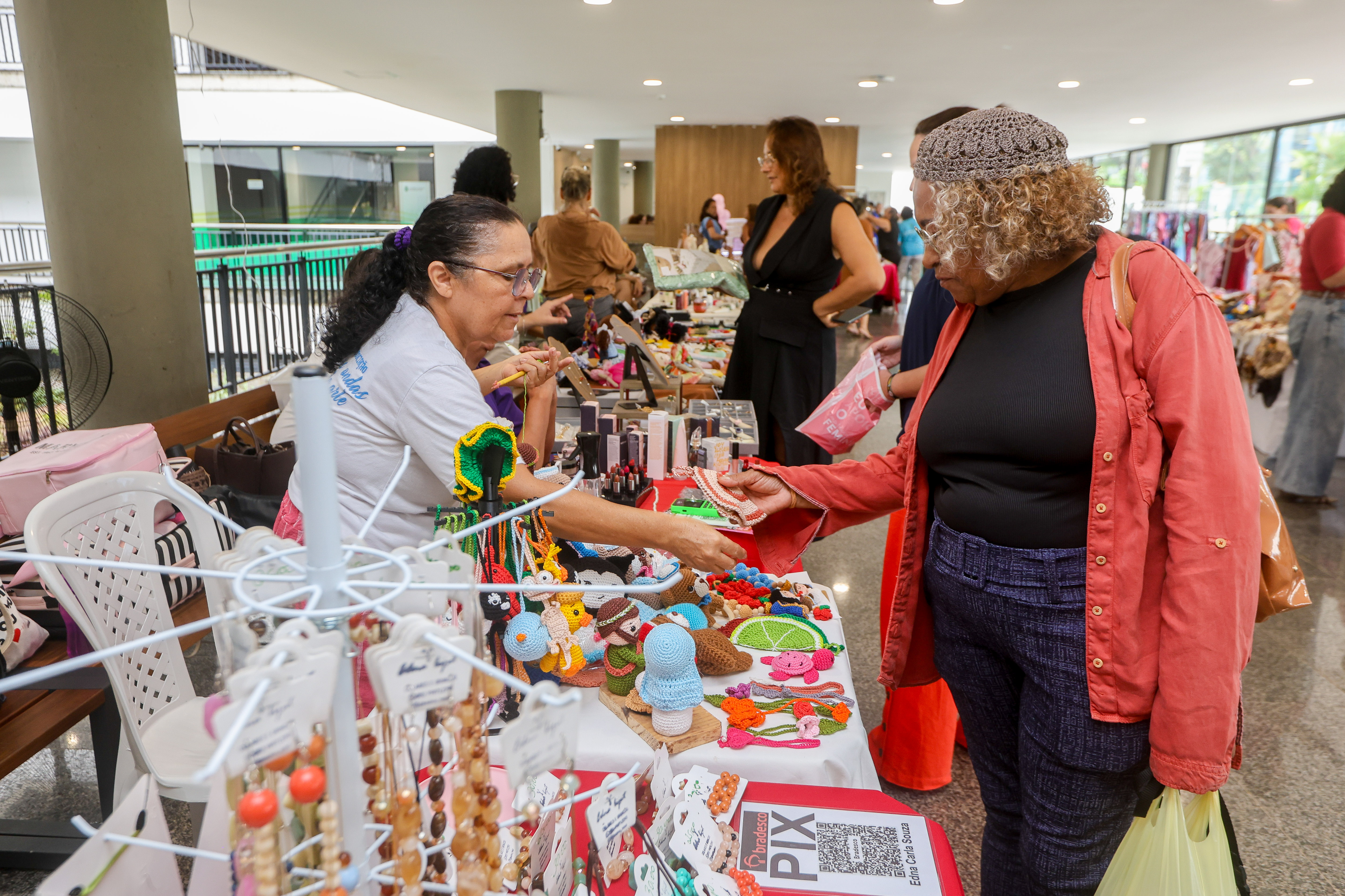 Lizia Costa, que participa pela segunda vez da Feira do Empreendedor, destacou a oportunidade de fazer parte do evento e explicou seu trabalho. “Estou aqui pela Associação Ondas da Arte, com o meu trabalho de amigurumis (técnica japonesa para criar pequenos bonecos feitos de crochê ou tricô).”