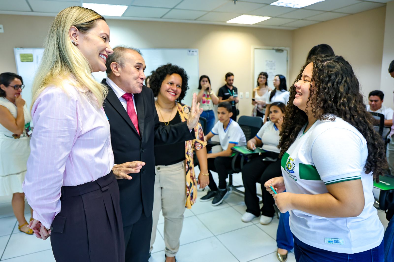 A primeira-dama da Alece e líder do Comitê de Responsabilidade Social, Tainah Marinho Aldigueri, esteve presente na ação e fez uma fala de incentivo às jovens estudantes. “Dificuldades sempre existirão, mas não podemos paralisar. Saibam que vocês são preciosas para a gente, vocês são o nosso futuro”, disse a primeira-dama durante a oficina e ainda reforçou a necessidade de mais iniciativas como esta. “Quando trazemos vocês para cá, nós atingimos nosso propósito de atrair as pessoas para perto do poder público”, comentou.