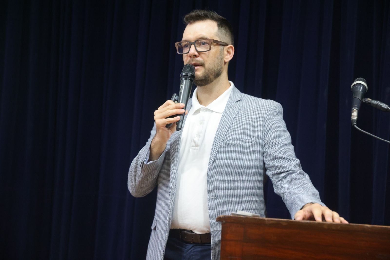 O neuropediatra do Ciadi, André Manganelli, falou sobre aspectos do desenvolvimento de pessoas com T21. Foto: Marcos Moura