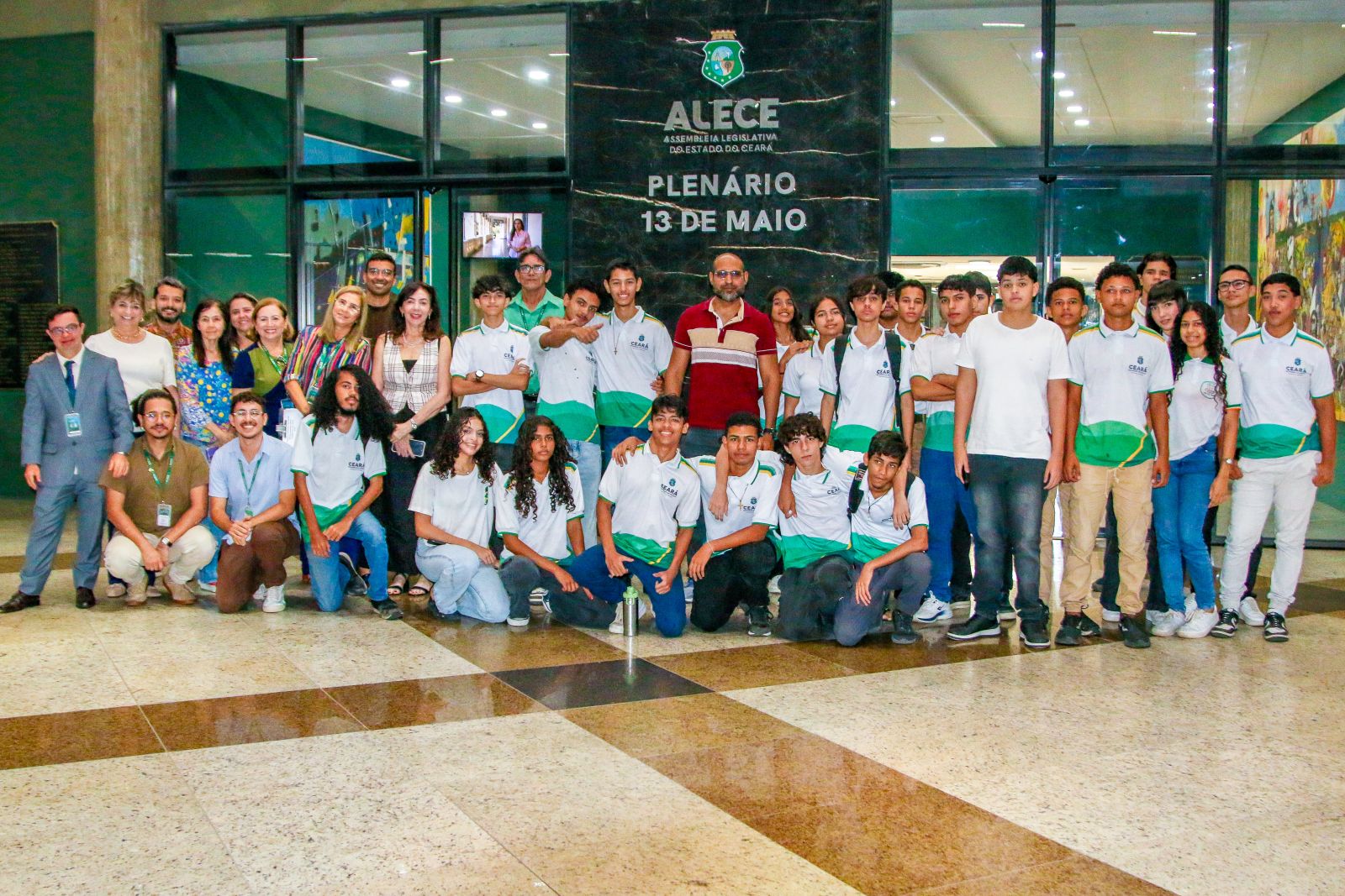 A turma foi formada por 18 estudantes do 9° ano e contou com o acompanhamento de três professores: Antônio Hélio, de Ciências; Maria da Conceição, de Geografia e História; e Maria Paiva, de Português. O grupo conheceu o cotidiano do Parlamento Cearense, os bastidores do Plenário 13 de Maio, o acervo do Malce e as demais instalações da Casa.