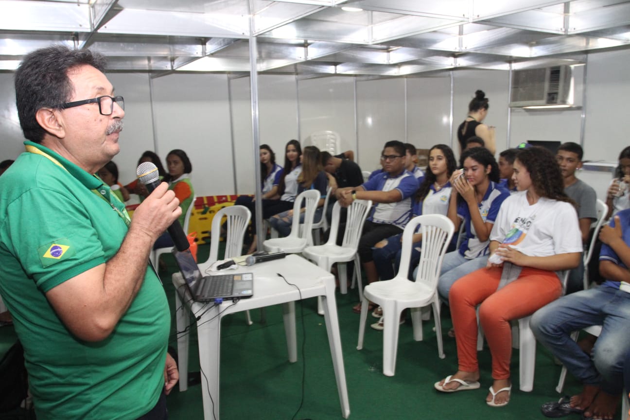 Em outro momento, a equipe da Secretaria do Meio Ambiente e Mudança do Clima (SEMA) realizou encontro com agentes jovens ambientais (AJA) com o tema “Educação ambiental e coleta seletiva”. O facilitador da Coordenadoria de Educação Ambiental da Sema, Genário Azevedo, que ministrou a palestra, explicou que estamos vivenciando uma “emergência climática” e que, se os jovens não agirem agora, certamente teremos problemas climáticos irreversíveis.