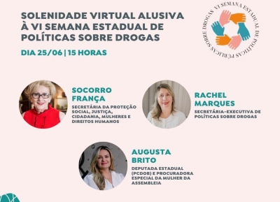 A Assembleia Legislativa do Ceará realiza, nesta sexta-feira (25/06), sessão solene em alusão a VI Semana Estadual de Políticas Sobre Dro...
