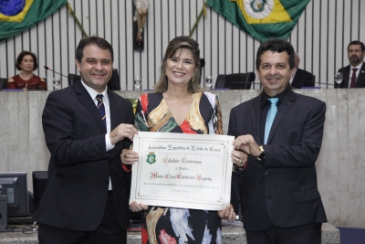 A contadora Maria Clara Cavalcante Bugarim foi homenageada na noite desta terça-feira (25/04), em solenidade de entrega do Título Honorífico de Cidadã Cearense realiz...