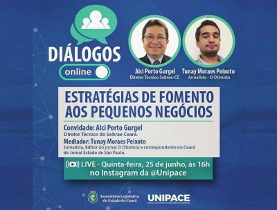 A Escola Superior do Parlamento Cearense (Unipace) promove, nesta quinta-feira (25/06), a partir das 16h, a sexta edição do projeto Diálogos Onl...